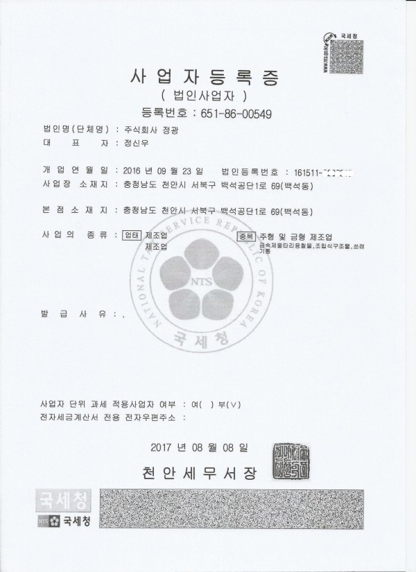 사업자등록증-(주)정광
